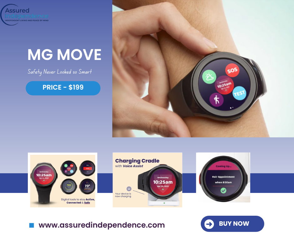 MG Move is a mobile medical alert system built for active users who want protection both at home and while on the go. It typically includes GPS tracking and cellular connectivity.